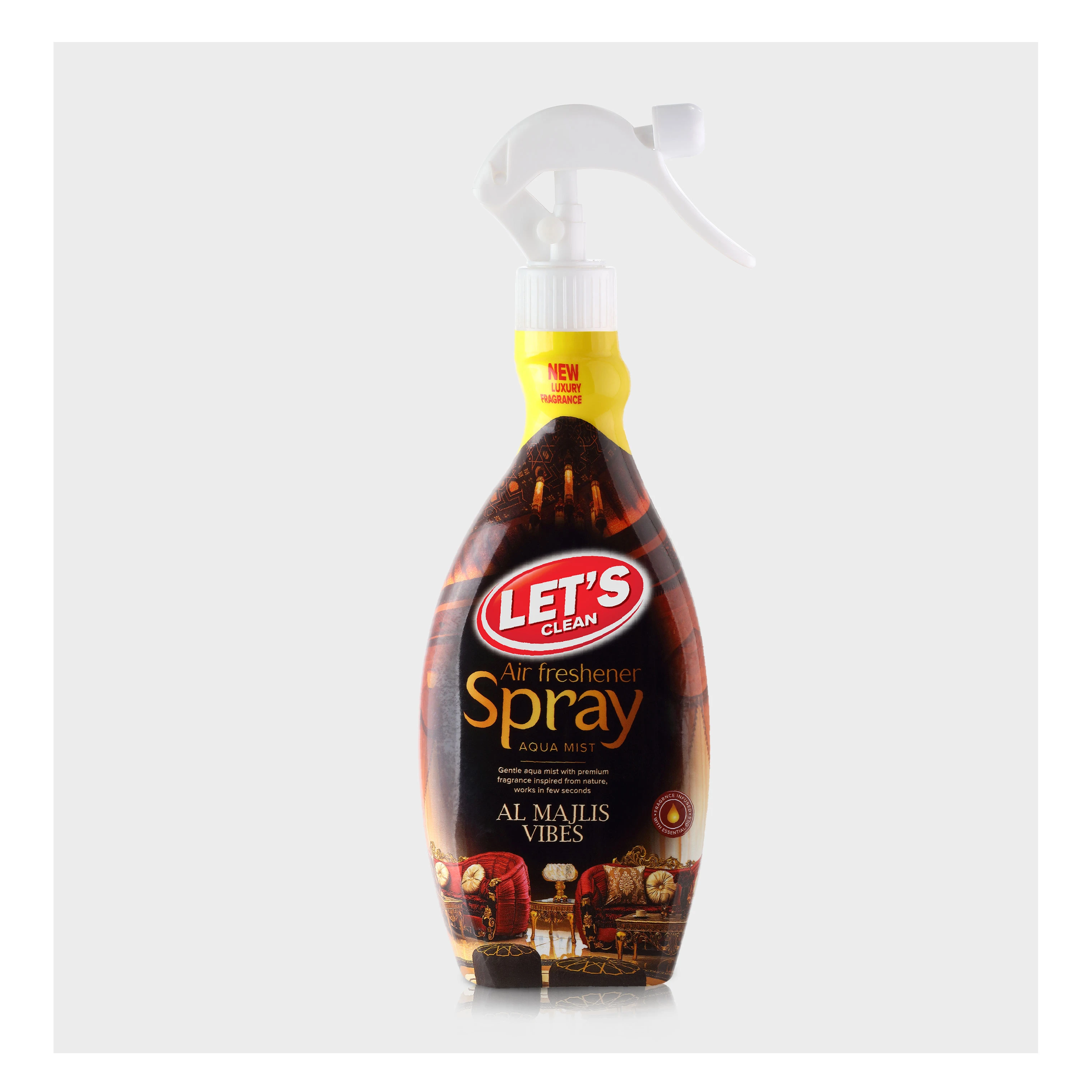 Eliminates unpleasant odors instantly with a long-lasting effect. Premium fragrance freshens your home and creates a pleasant atmosphere within seconds. Gentle aqua mist, gas-free, available in an economic size. Choose from 10 premium nature-inspired fragrances: Musk & Amber, Lavender, Tropical Fruit, Cherry Blossom, Oriental Oud, Majesty, Flamingo Story, Al Majlis Vibes ,sharm , and Al Sultana.